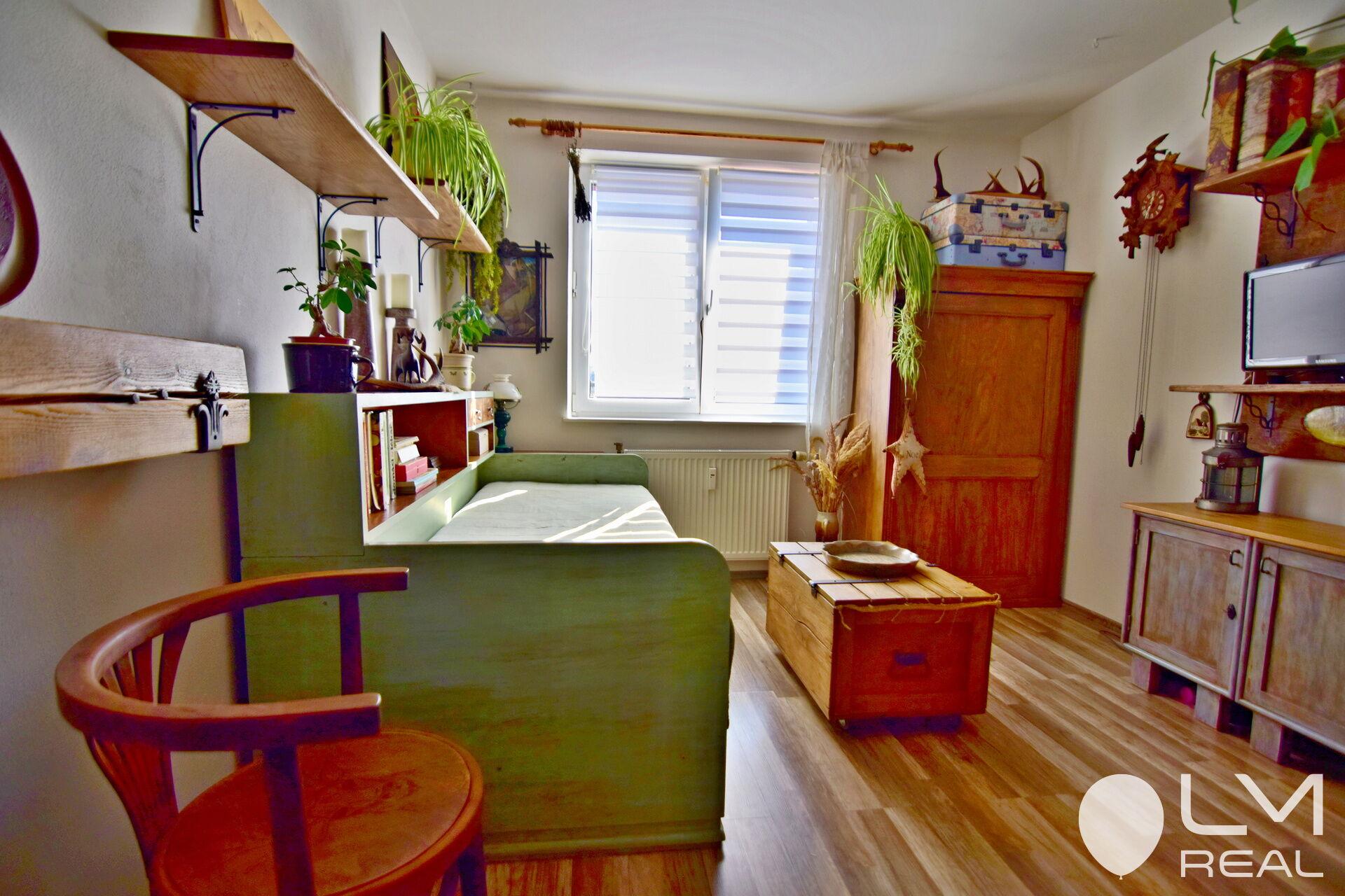 Dispozice: pokoj 18,33 m2, pokoj 14,99 m2, kuchyně 6,58 m2, předsíň 4,96 m2, koupelna 3,14 m2, WC 0,93 m2, sklep 2,12 m2, balkon cca 5 m2.